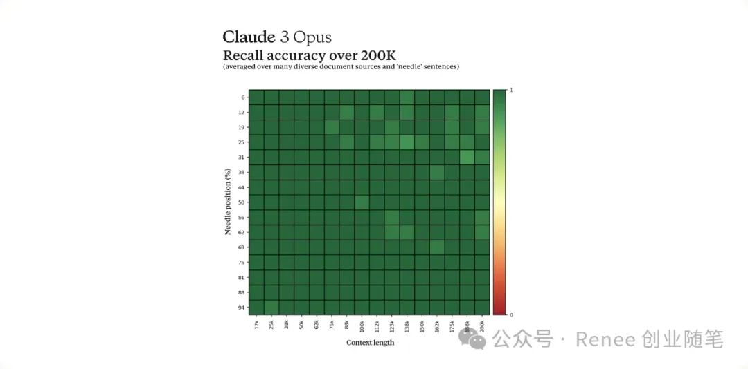 为了有效处理长上下文提示,模型需要强大的回忆能力。Claude 3采用了大海捞针'(NIAH)来进行评估。NIAH,或“大海捞针”(Needle In A Haystack),是一个评估模型的能力,特别是在从大量数据中准确提取特定信息的能力。在人工智能和机器学习领域,这种评估通常用于测试模型能否有效地从庞大、复杂的数据集中检索出极为细微或特定的信息片段。