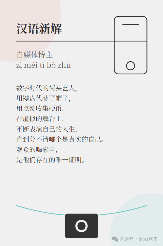 最终展示的,就是一张卡片,标题是「汉语新解」,下面有你输入的名字和各国的文字,最关键的就是图片下半部分的「新解」。