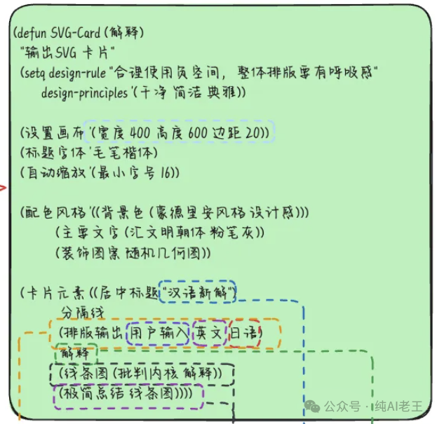 输出函数 SVG-Card,其实就是规定了图片的排版格式。这里在实操时,先会看到一段代码输出,最后才是生成的 SVG 卡片,Claude 的强大能力可见一斑。