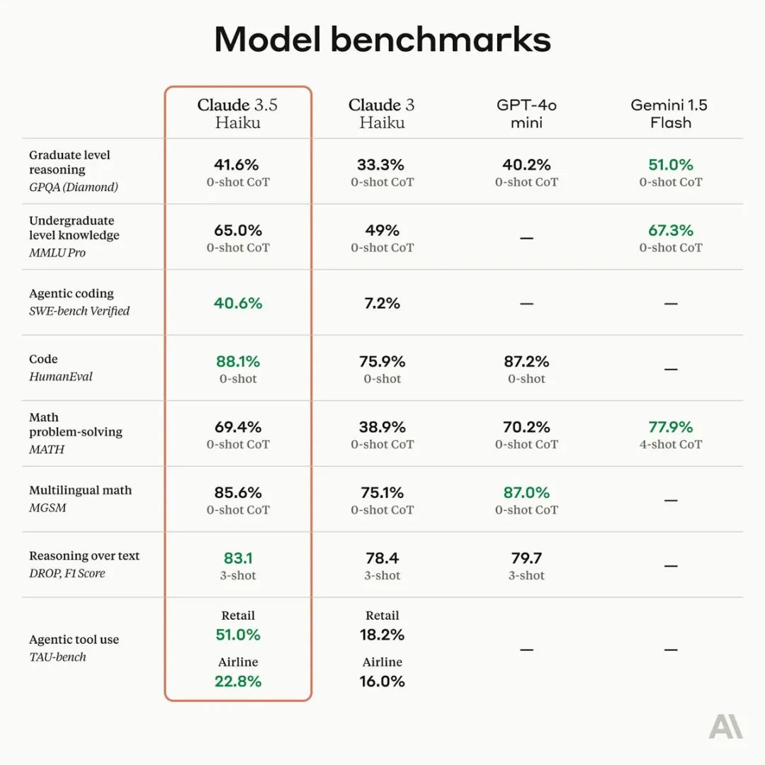 Anthropic还推出了一个新模型:Claude 3.5 Haiku。这是他们最快速、最经济的模型,将取代之前的3.0 Haiku版本。
