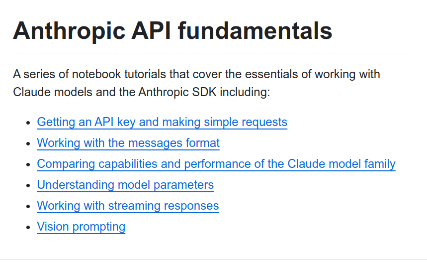 值得注意的是,课程里经常使用Claude 3 Haiku模型,这是Anthropic成本最低的模型之一。这样做是为了降低学生跟随课程材料时的API成本。