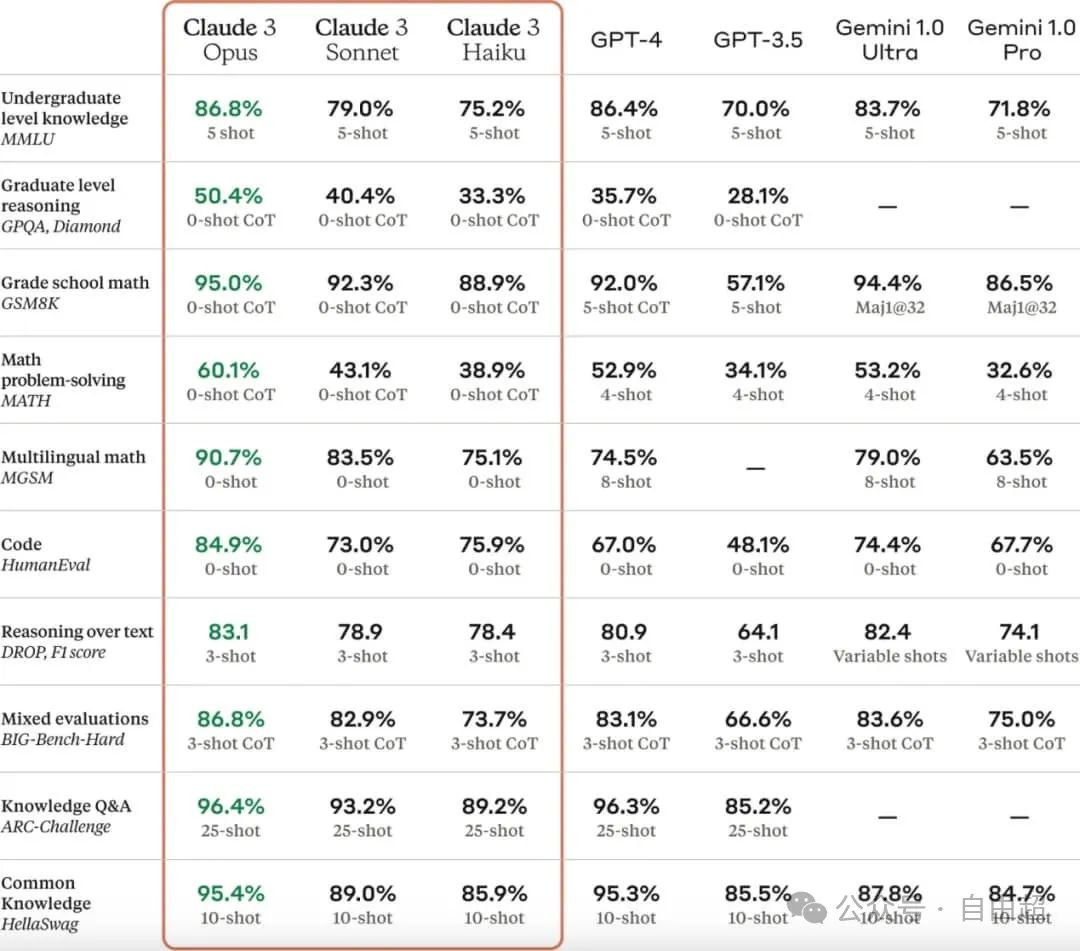 从各大测试机构测试结果来看,能力排名来看Claude 3 Opus>GPT4.0>Claude2≈GPT3.5。