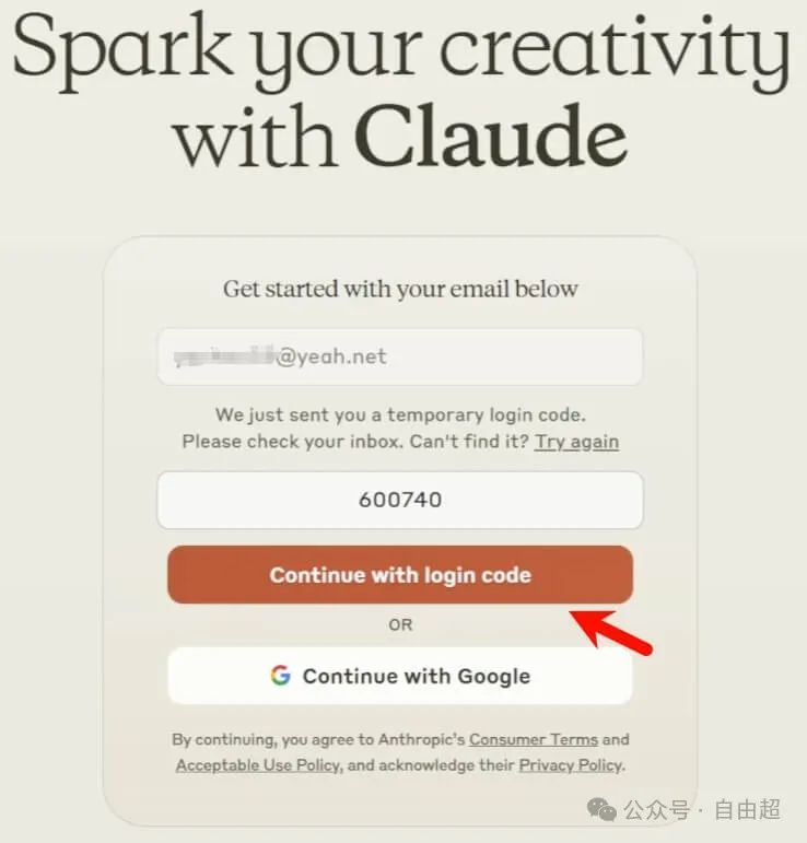 邮箱会收到验证码,输入验证码,点击【Continue with login code】