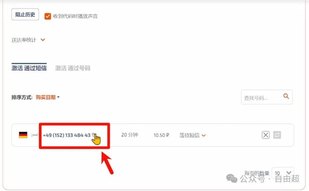 购买后,复制跳出来的手机号(收不到验证码会自动退钱,不用担心操作失误)