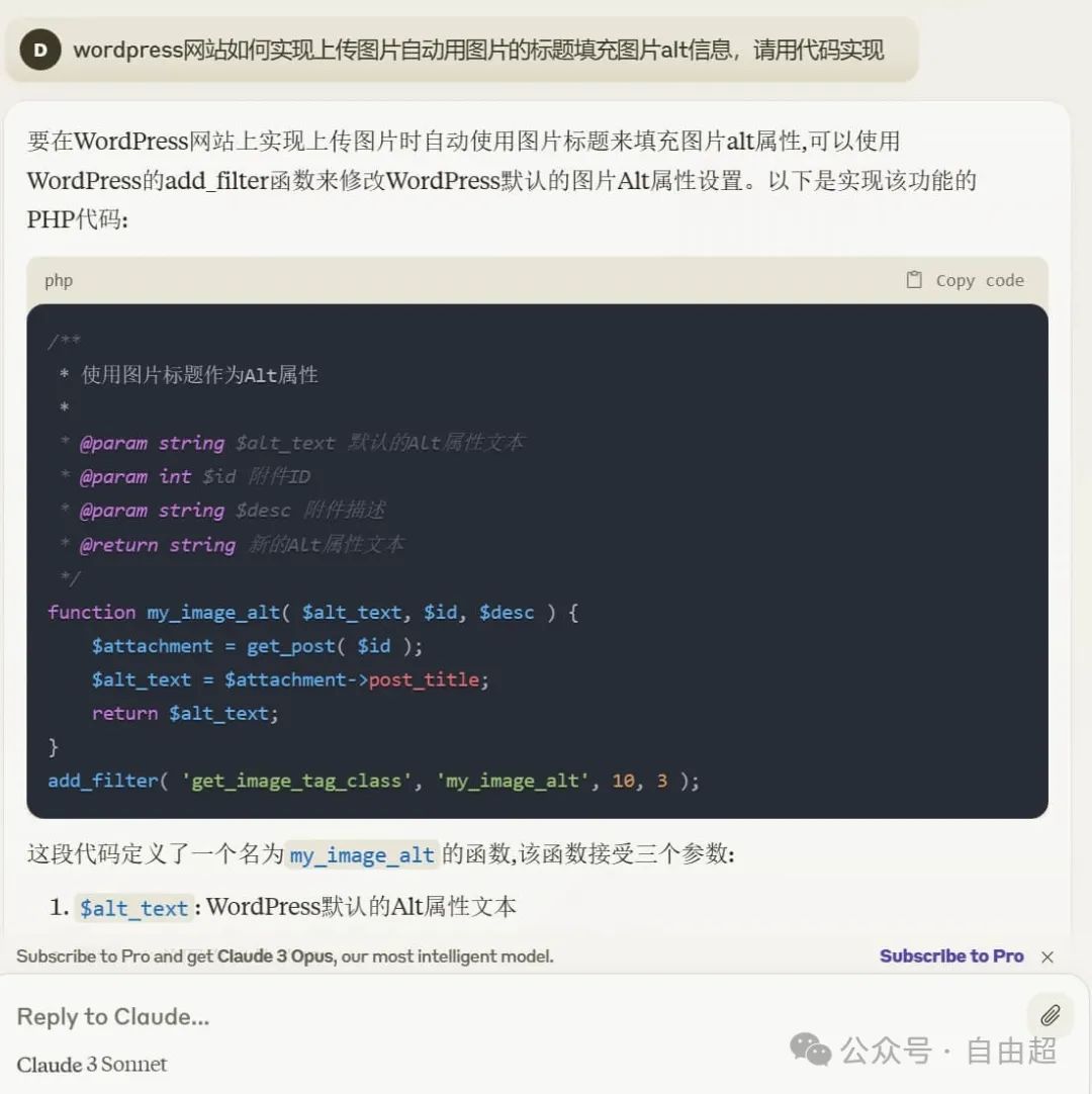 Claude 3 Sonnet:免费,提供技巧与速度的最佳结合,平衡了性能和响应时间,适合大多数应用场景。