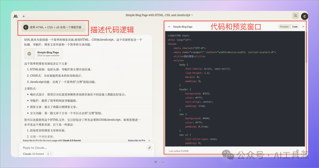 这时候,Artifacts 就会随着内容回复,出现在右侧: