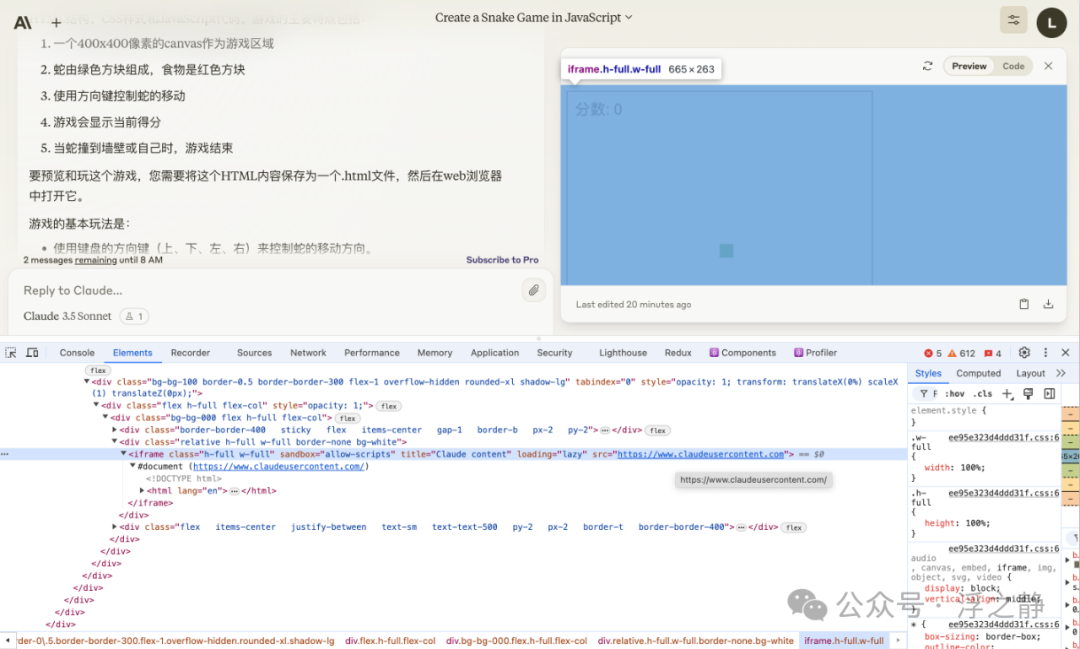 生成预览:这次的 Claude Artifacts 功能,正在以一种实时,直观的方式与用户进行互动。