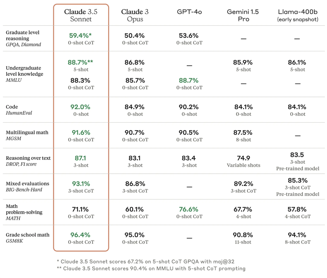 Claude 3.5 Sonnet 为研究生水平推理 (GPQA)、本科生水平知识 (MMLU) 和编码能力 (HumanEval) 设定了新的行业基准。它在掌握细微差别、幽默和复杂指令方面表现出显著的进步,并且擅长以自然、亲切的语气撰写高质量的内容。