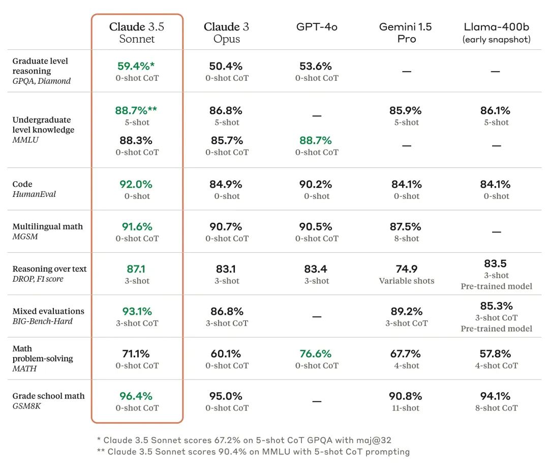 根据官方介绍,Claude 3.5 Sonnet是Claude 3.5全系列中首个版本,在广泛评估中胜过GPT-4o等同类型模型。