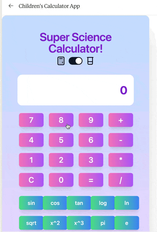 Claude 3.5 Sonnet 不愧用的是React,30秒内做出来的计算器可真漂亮啊。