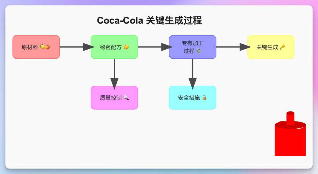 Draw the key generation process of Coca-Cola in SVG
