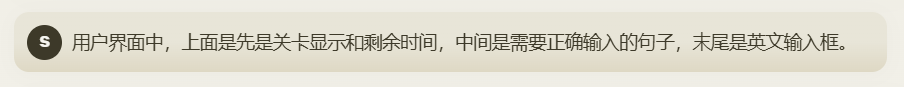 上方有关卡等级和倒计时,中间是需要输入的句子,最末尾是输入框。