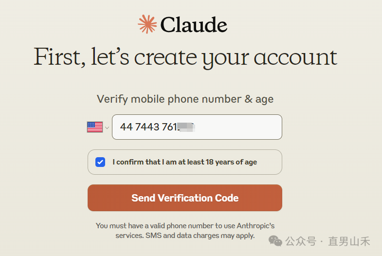 不同于其它软件使用google邮箱账号就能登录使用,claude在使用邮箱后,仍需要电话号码接受验证码才能注册成功。