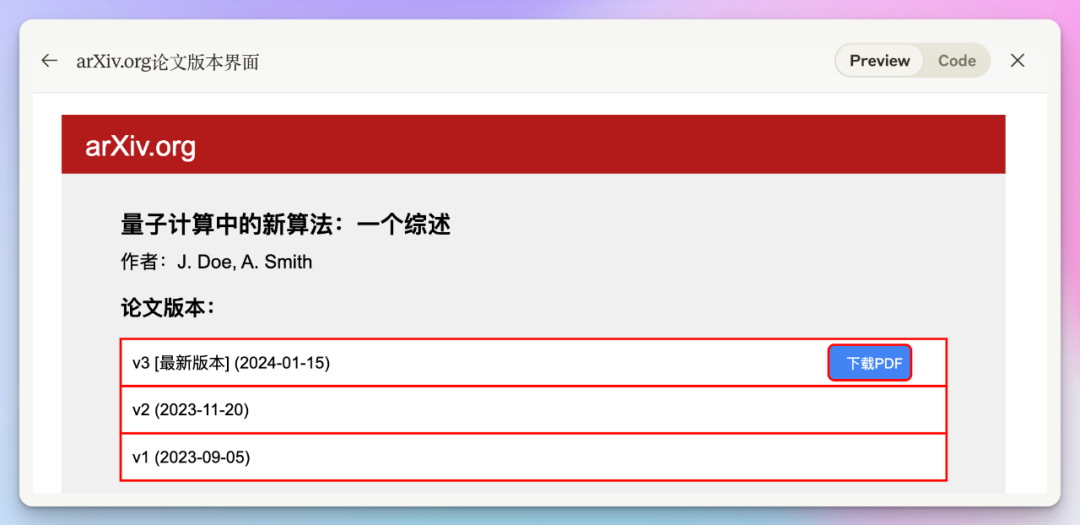 请继续展示如何在arXiv.org上使用高级搜索功能和如何查看论文的不同版本。为每个步骤生成SVG图像并解释。