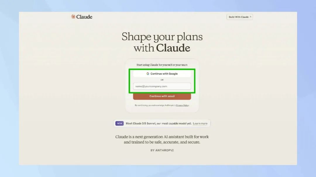 如果你已经拥有 Claude 帐户,请访问 Claude 网站https://claude.ai,并点击“继续使用 Google 或电子邮件”即可开始聊天。