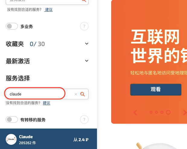 还是曾经我们注册 ChatGPT 时用的那个——SMS,大家自行注册并进入你的 SMS 界面,在这里↓输入“claude”并点击搜索。