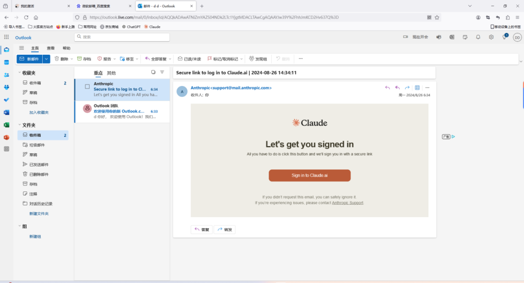 接着需要到outlook邮箱去点击收到的邮件里的按钮进行验证。