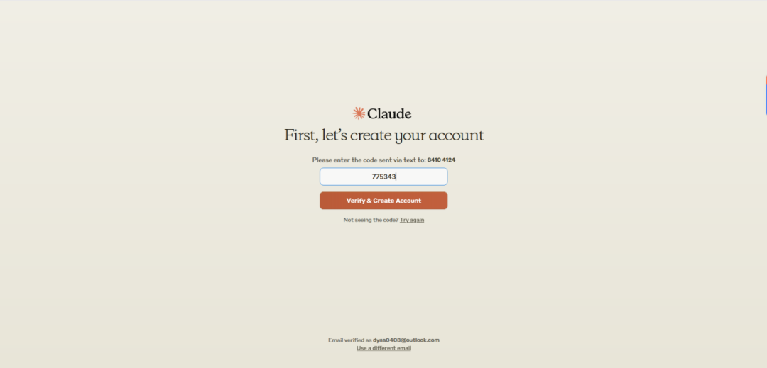 粘贴到claude的验证码输入框中,点击【Verify & Create Account】,即可注册成功。