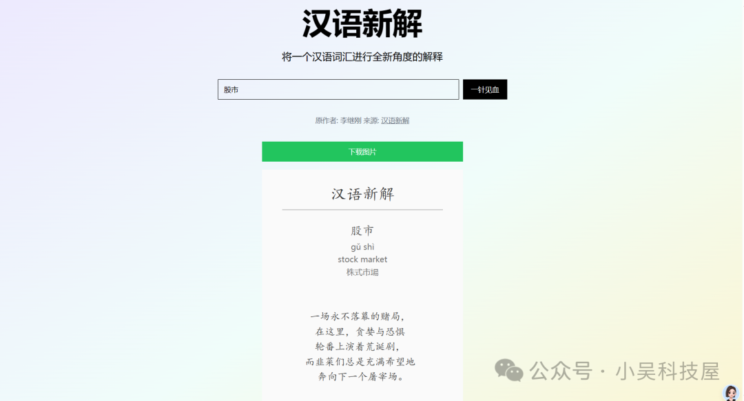 视频没有任何加速,三十秒不到,一个排好版风格非常好看的汉语新解卡片就这么完成了。👍