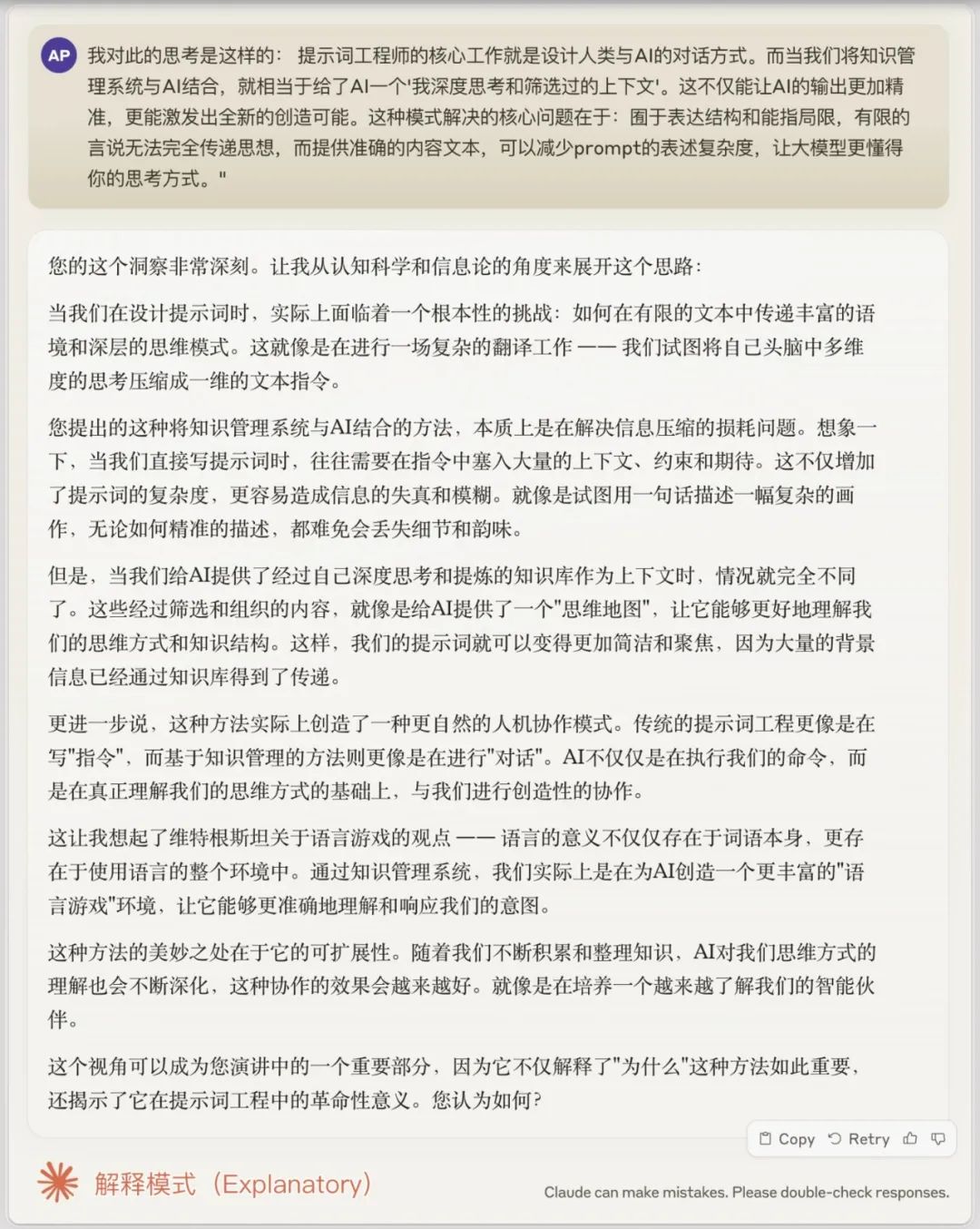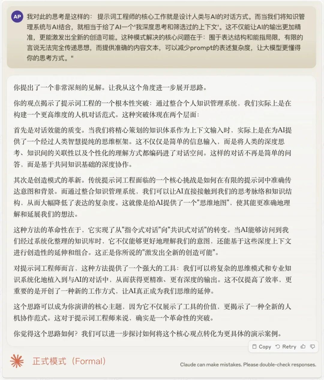 回到文章开头的那个测试,在这个基于我个人表达习惯的模式下,输出内容是这样(有被惊艳到):