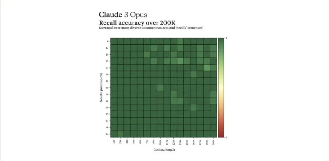 之前“Claude 2.1超大杯”上下文处理能力一直饱受吐槽,这一次在Claude 3系列模型上得到了系统升级。据悉,用大海捞针(NIAH)方法来评估衡量大模型从大量数据中准确召回信息的能力,这一次,Claude 3 Opus实现了近乎完美的召回率,和超过99%的准确率。![]()