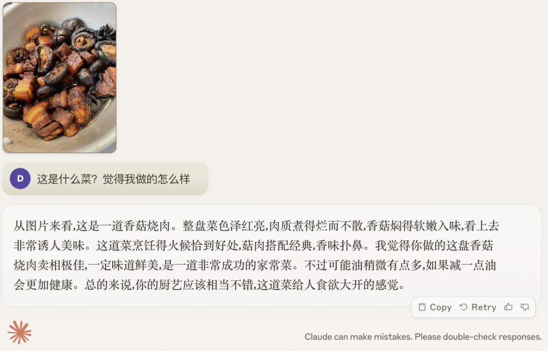 看完小编做的菜,Claude 3还给出了一些中肯的建议。![]()